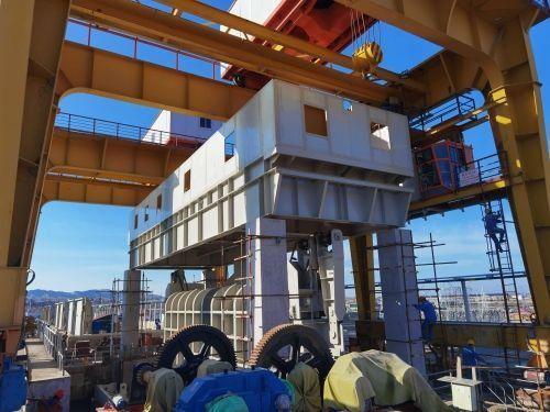 3月3日,塔吉克格拉夫那亞水電站技改工程溢洪道雙扉門啟動吊裝,歷經40分鐘,穩穩吊入預定位置,大壩溢洪道雙扉門及鏈條式啟閉機更換工程步入新的節點。本次溢洪道鋼平臺的吊裝成功極大的降低了即將到來洪水期漫壩的風險,待鋼平臺微調固定后即可對鋼平臺的機械及電氣設備進行安裝與調試并投入使用。
