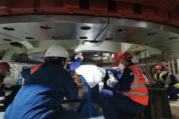 為了確保2號機組轉子按期吊裝,從開始組裝,文登項目部精心組織,超前策劃,克服疫情影響,合理安排人員爭分奪秒,加班加點組織施工,確保了轉子按期組裝完成并順利完成整體耐壓試驗,2號機組轉子磁極圓度、同心度、垂直度均滿足國家優良標準,每一道工序質量均優于行業標準,達到廠家技術要求及國網新源WHS點優良參數。